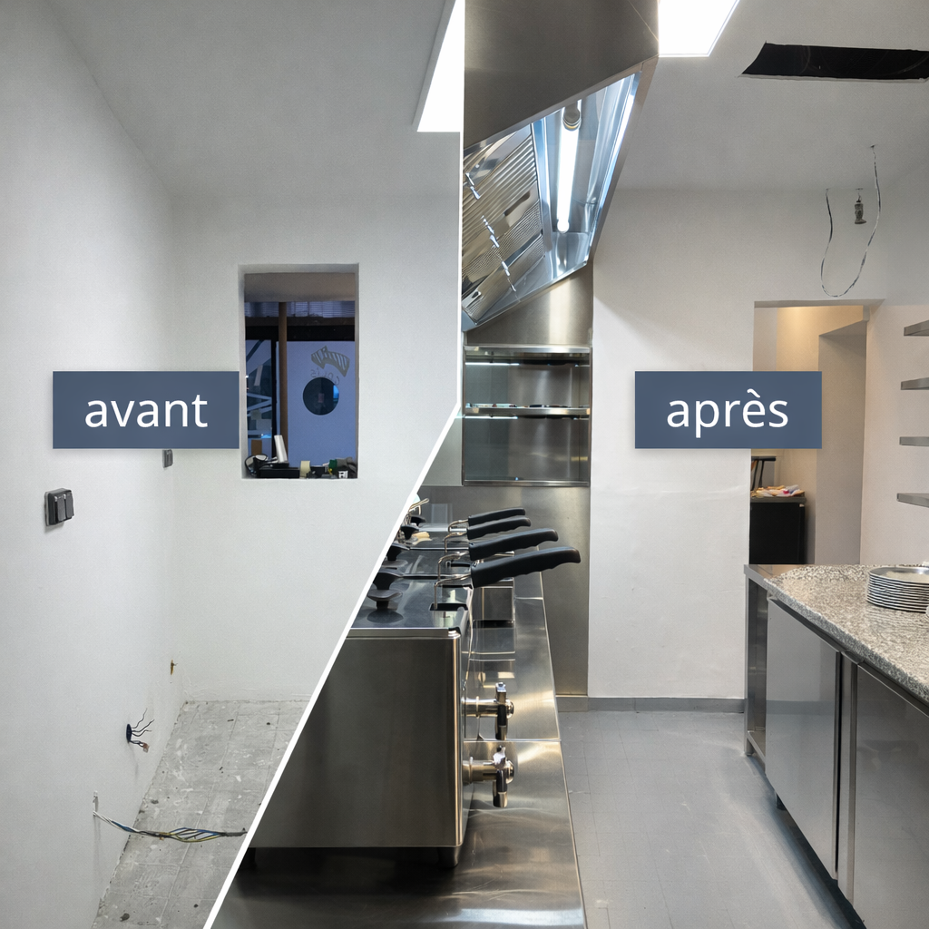 Le plus tôt possible ! Idéalement dès la phase de conception du local ou du projet architectural. Cela permet d’anticiper les contraintes techniques (ventilation, évacuations, arrivées d’eau, réseaux électriques, gaz, etc.) et d’optimiser les coûts. Je peux également intervenir pour des rénovations ou mises aux normes.